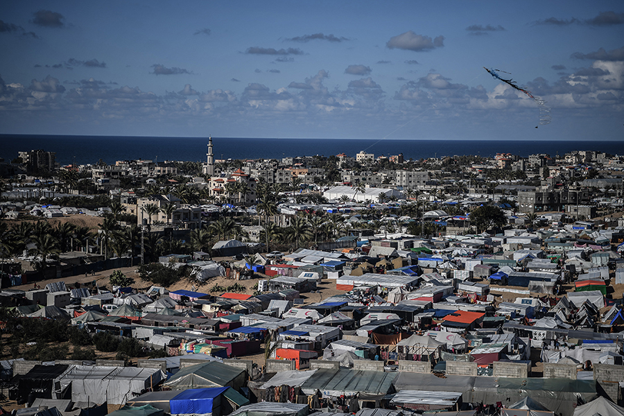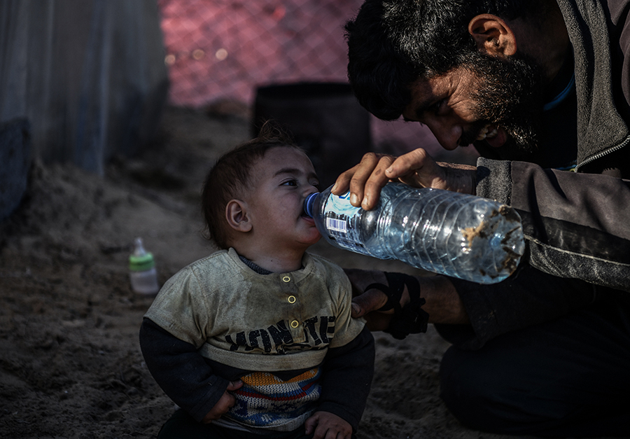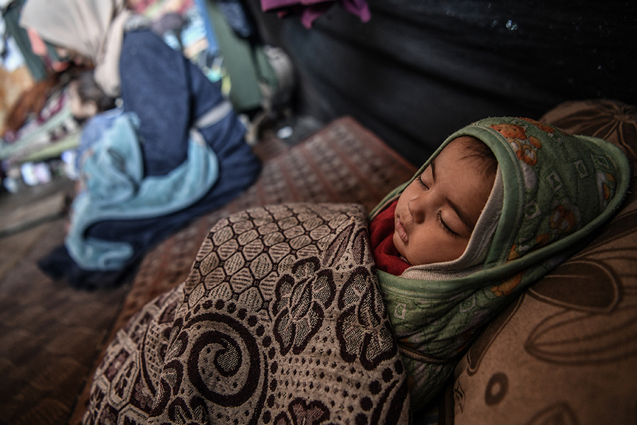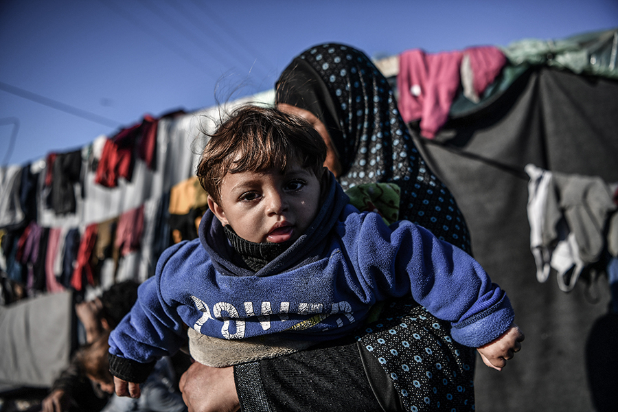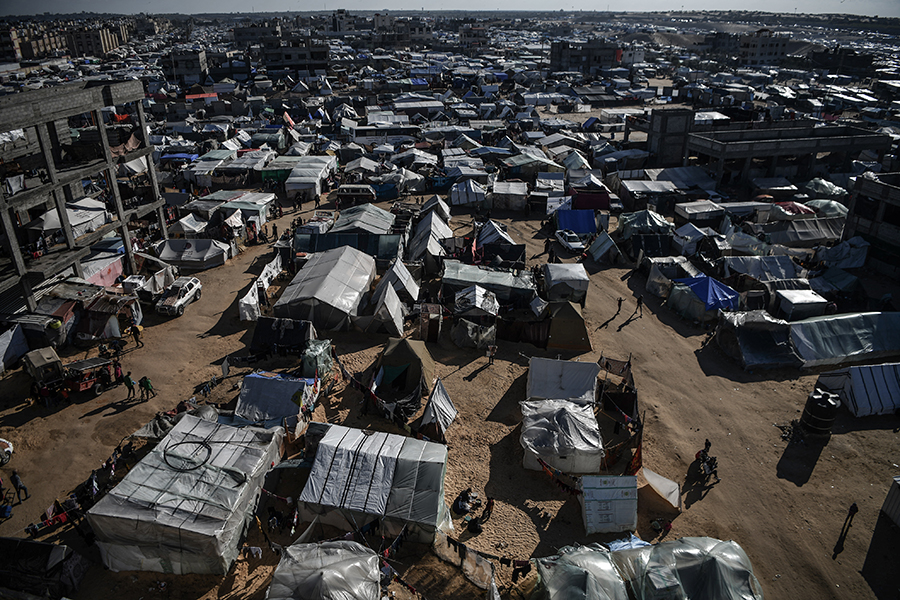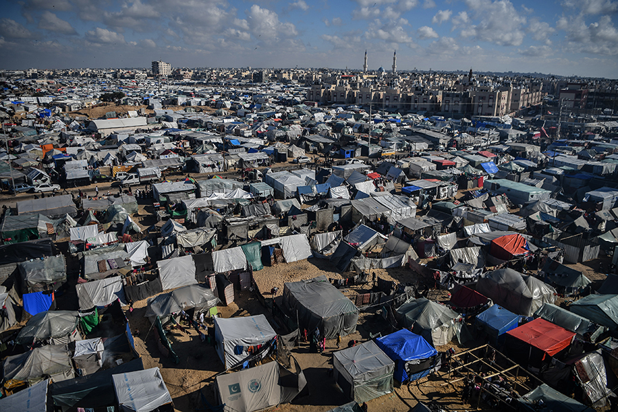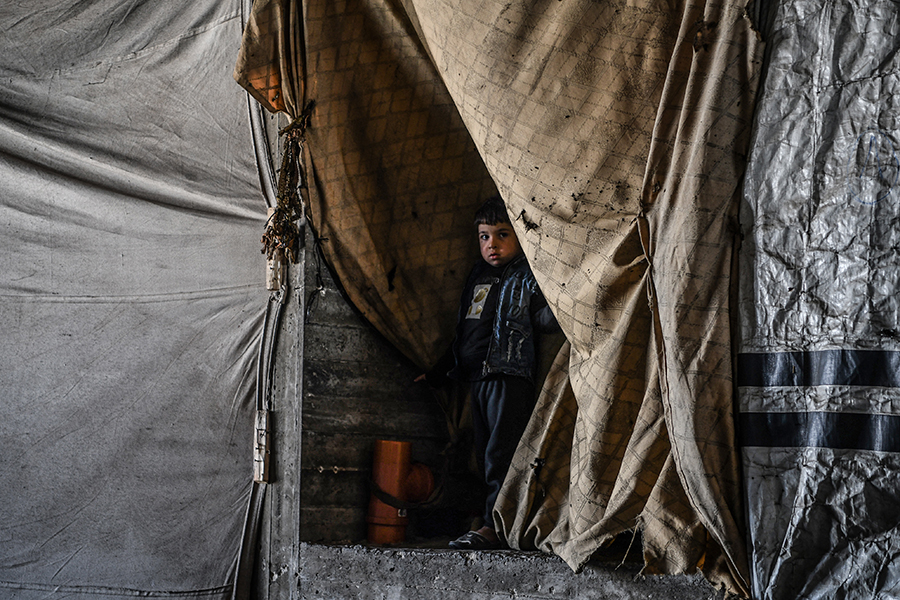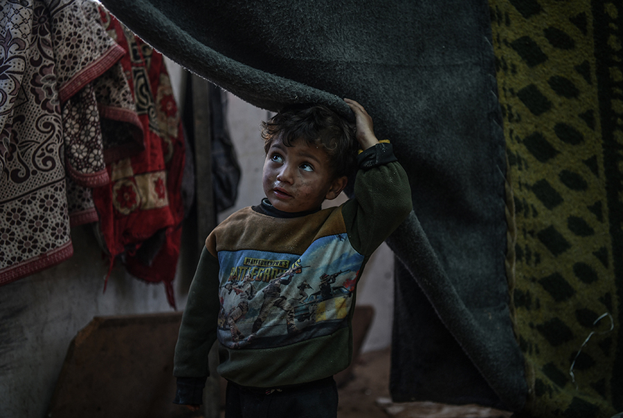 Katil İsrail'in bombardımanından korunmak ve can güvenliklerini sağlayabilmek için evlerini terk edip Gazze'nin Refah kentine sığınan Filistinli aileler, derme çatma çadırlarda zor şartlar altında yaşamlarını sürdürmeye çalışıyor.