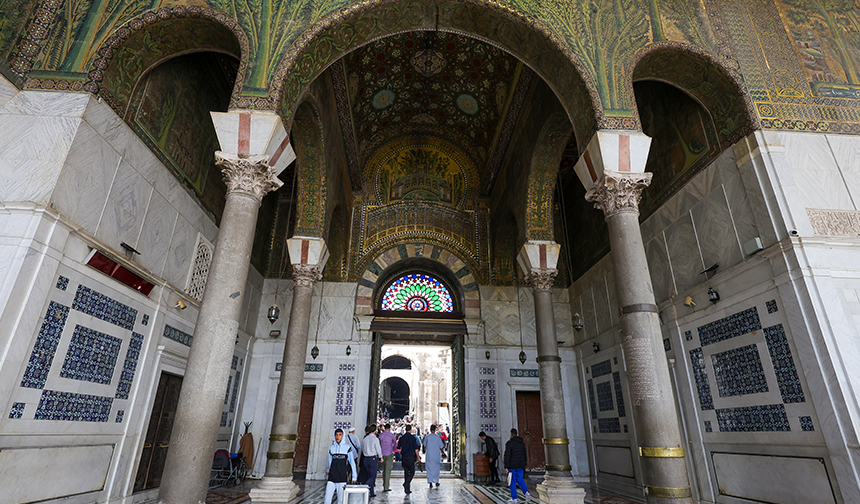705 yılında Emevi Halifesi I. Velid tarafından inşa ettirilen cami, Roma dönemine ait Jüpiter Tapınağı’nın yerine kurulmuş ve Bizans döneminde Vaftizci Yahya Kilisesi olarak kullanılan yapının izlerini de taşımaktadır.