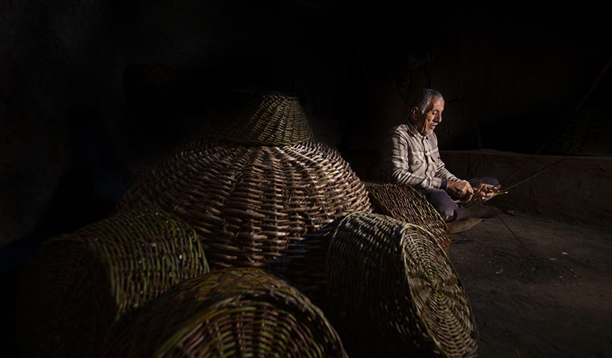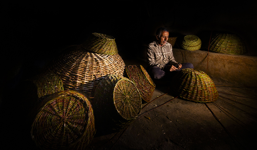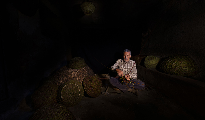 Bölgede uzun yıllardır yaygın olarak kullanılan geleneksel sepetlerin üretimini sürdüren Aşar, Mardin’de bu mesleği icra eden son ustalardan biri.