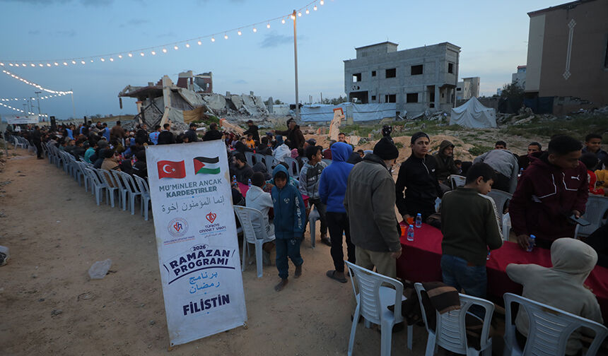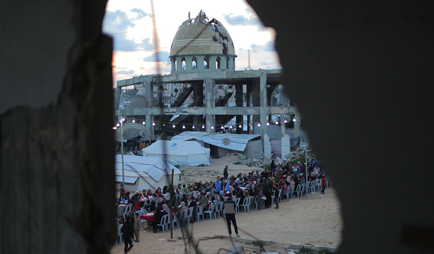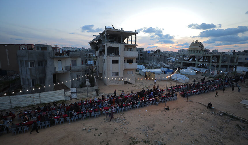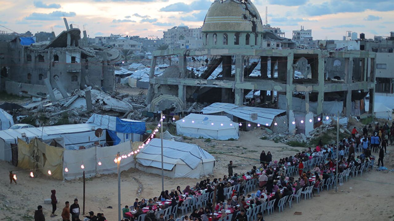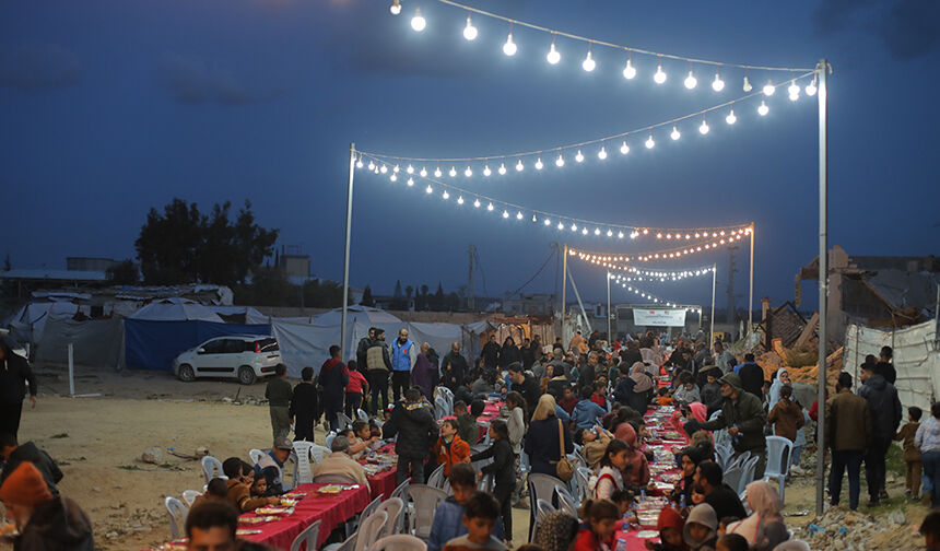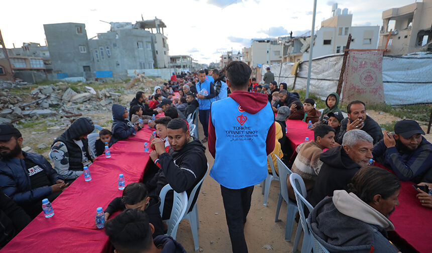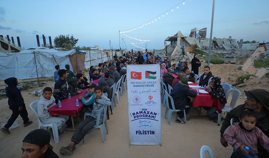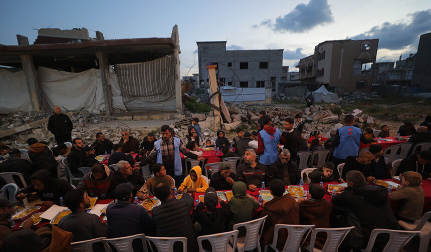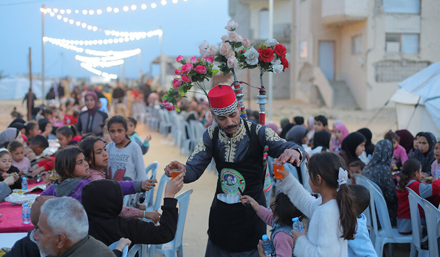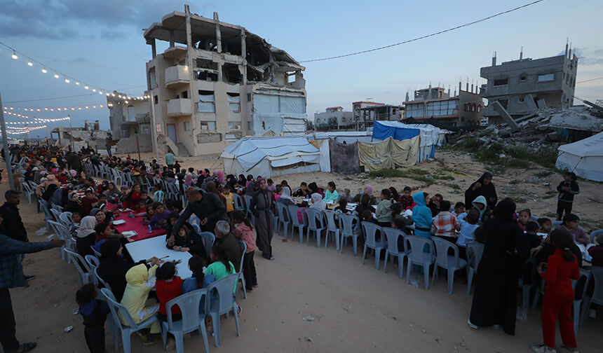 Gazze Şeridi’nin orta kesimindeki Nusayrat Mülteci Kampı’nda yerinden edilen Filistinliler için toplu iftar programı düzenledi.