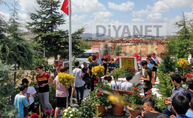 Yaz Kur’an kursu’nda eğitim gören öğrenciler, Diyarbakır'ın Sur İlçesinde polis ekibini taşıyan aracın geçişi sırasında PKK'lı teröristlerce düzenlenen saldırıda ağır yaralanan ve tedavi gördüğü hastanede şehit düşen Polis Memuru Furkan Demir’in kabri başında Kur’an-ı Kerim okuyup tüm şehitler için dua ettiler.