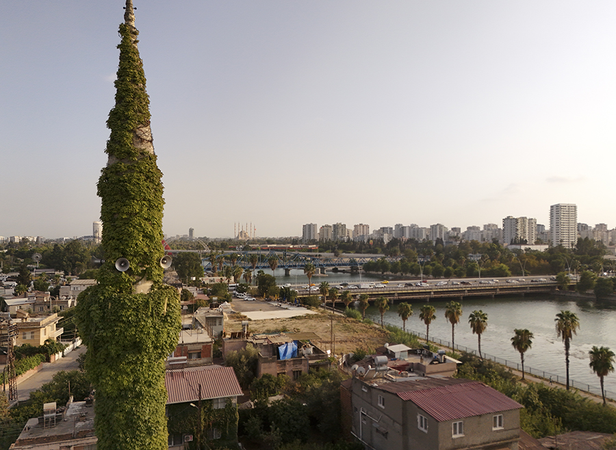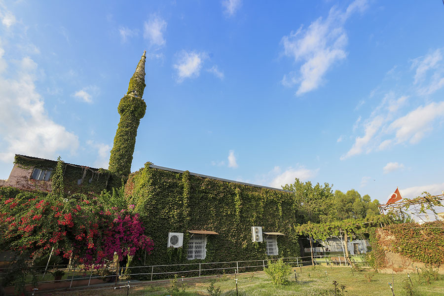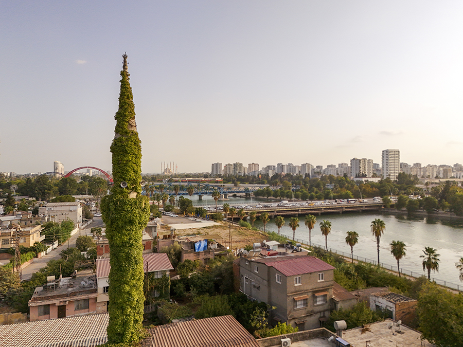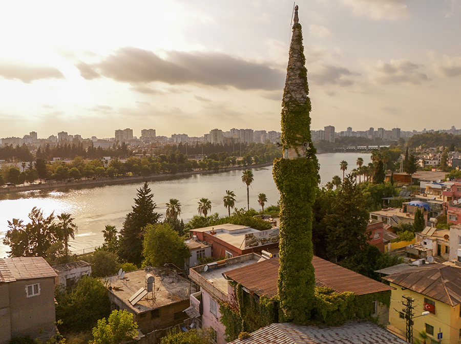 Adana'da, Seyhan Nehri'nin kıyısında bulunan dış duvar ve minaresini kaplayan sarmaşıklar nedeniyle "Yeşil Cami" olarak bilinen Köprüköy Camisi, bahçesinde açan farklı renklerde çiçekler ve yeşilin tonlarıyla dikkati çekiyor.