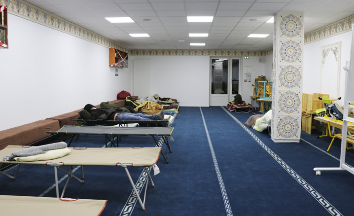 Müslüman topluma "ayrılıkçı" ithamlarının yöneltildiği ve göçmenlerin ısınmak için elbiselerini yaktığı Fransa'da, başkent Paris yakınlarındaki Mantes Sud Camii, soğuk kış günlerinde sokaklarda kalan ve çoğunluğu göçmen olan evsizlere kapılarını açarak yürek ısıtan dayanışma örneği sergiliyor.