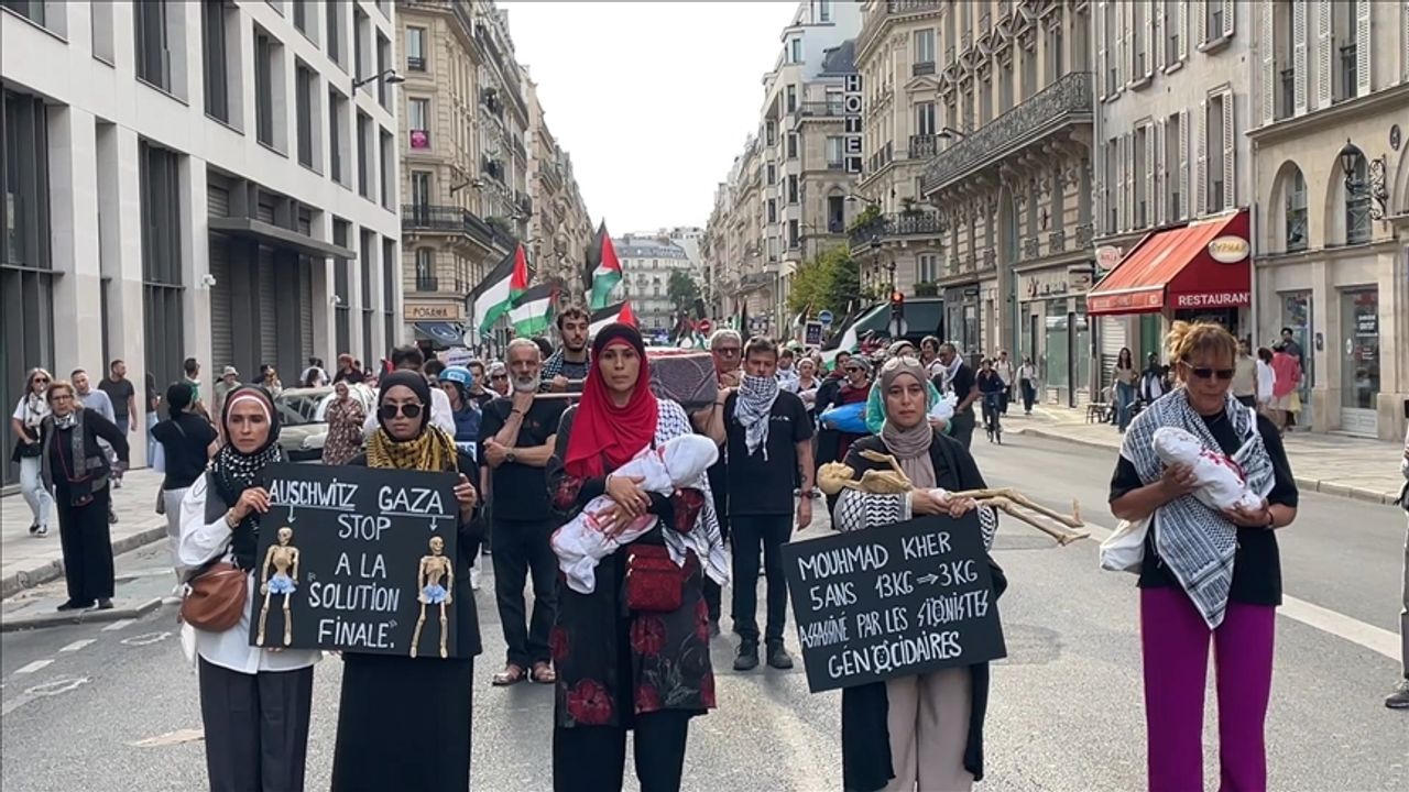 Soyadını vermek istemeyen Helene isimli gösterici, AA muhabirine, "Filistinlilerin haklarını savunmak ve işgalcilerden soykırımı durdurmasını istemek için bugün buradayım." dedi.