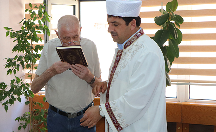 Kur’an-ı Kerim tilavetinin ardından İl Müftü Vekili Özer Cömer, Emile'ye İslam’ın temel esasları ile ilgili bilgi verdi.