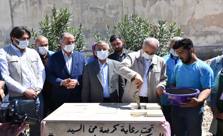 Dualar eşliğinde başlayan temel atma töreninin ardından el-Mahabbe (sevgi) Kampı'nda yaşayan ihtiyaç sahibi ailelere 200 adet gıda kolisi dağıtıldı.
