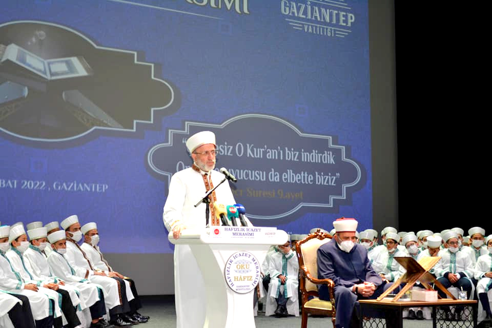 “Cenab-ı Hak, hayatları boyunca yavrularımızın gönlünden Kur’an-ı Kerim'in rahmetini, bereketini hiçbir zaman eksik etmesin. Bugün Gaziantep için gerçekten çok özel ve çok müstesna bir gün. 200 civarında hafızımızın hafızlık icazet merasimi için bir araya geldik. Bu tablo Gaziantep'in şu ana kadarki gördüğü en muhteşem tablolardan bir tanesidir. 200 hafız bir arada ve bu yavrularımızın her biri diplomalarını aldılar, hafızlıklarını ikmal ettiler, sınavları geçerek bugün huzurunuza geldiler. Bu yavrularımız salgın döneminde o zor koşullarda her birimiz köşemize çekilirken, her birimiz hanelerimizde ‘ne olacak’ diye beklerken, salgın döneminin kahramanı oldular. Allah'ın kelamını ayet ayet sure sure gönüllerine nakış ettiler. Can-ı gönülden tebrik ediyor, muvaffakiyetler diliyorum.” dedi.