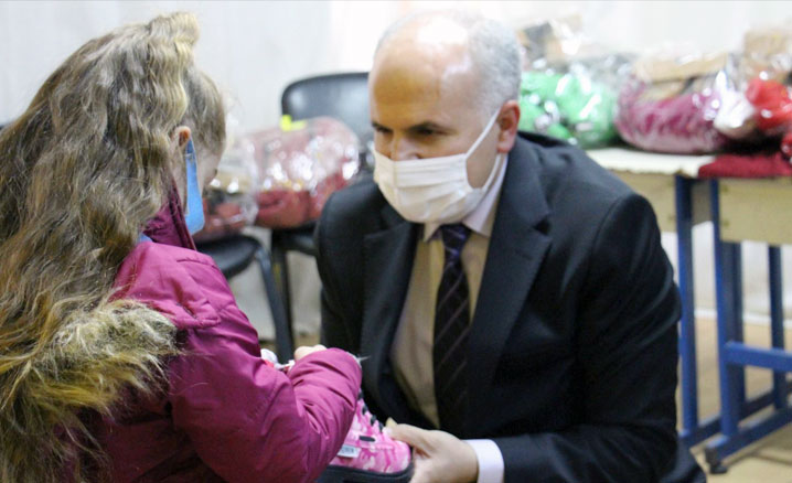 Öğrencilerle bir araya gelen Gaziantep İl Müftüsü Dr. Hüseyin Hazırlar, “Bu kış mevsiminde Türkiye Diyanet Vakfı Gaziantep Şubesi Kadın Kollarının başlattığı anlamlı bir çalışma var. ‘Kış Bayramı’ dedik. Bu kışın ortasında özellikle muhtaç ailelerin çocuklarını tespit etmek suretiyle çocukların bot ve mont ihtiyaçlarını karşılamak için bir çalışma başlatıldı. Okullarımızla işbirliği içerisinde bu muhtaç çocuklar tespit edildi. Kadın kollarımızın her biri ve birbirinden değerli gönüllüleri, bu anlamda bu kardeşlerimiz için bir kampanya başlattılar. Bugün itibariyle 267 çocuğumuza bot ve mont desteğinde bulundular.” dedi.