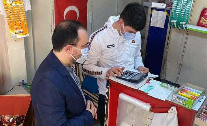 Gaziosmanpaşa İlçe Müftülüğü koordinesinde ihtiyaç sahiplerinin yardımına koşan Pazariçi Saadet Camii İmam Hatibi Turgay Karakurt, mahalle bakkallarından veresiye alışveriş yapan vatandaşların borçlarını ödüyor.