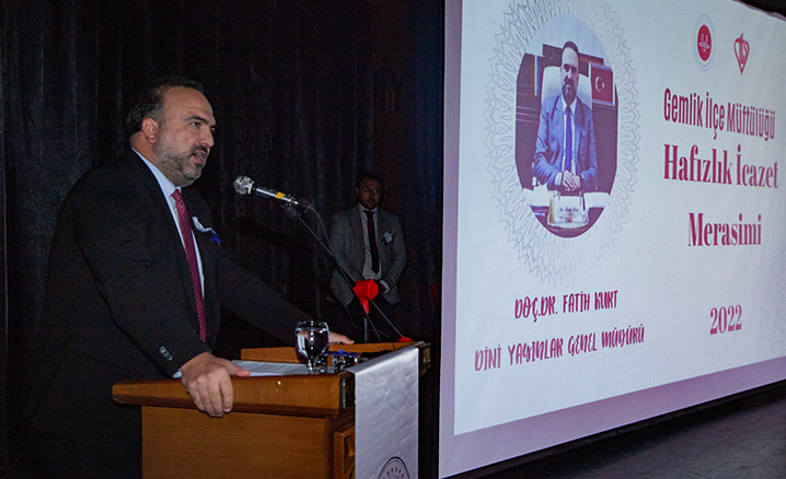 Programda konuşan Dini Yayınlar Genel Müdürü Doç. Dr. Fatih Kurt, "İnsan için en büyük şeref hafız olmaktır. Kur’an-ı Kerimi ezberlemektir. Bu peygamberimizin (sas) ifadesidir. Bu şerefe erişen yavrularımızı canı gönülden tebrik ediyorum." dedi.