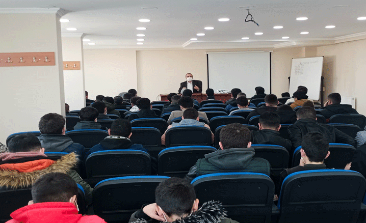 İlçe Müftülüğü Konferans Salonu'nda koronavirüs tedbirleri eşliğinde gerçekleştirilen programda, İlçe Müftüsü Rahmi Sancar gençlere Hz. Ebubekir'i anlattı