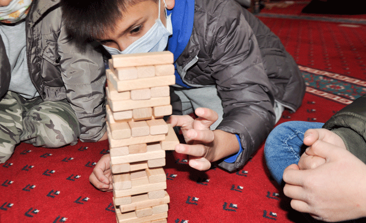 Bu kapsamda; "Tak Maskeni Yap Hamleni" sloganıyla düzenlenen etkinlik kapsamında camide buluşan gençler, zeka ve akıl oyunlarıyla keyifli dakikalar geçirdi.