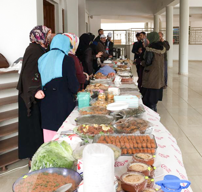 Yomra Merkez Camii avlusunda kurulan kermese esnaf, din görevlileri ve ailelerinin hazırladığı ikramların yanı sıra Kur’an kursu öğrencileri de “Genç Eller Mutfakta” sloganıyla hazırladıkları yöresel yemeklerle katkıda bulundu.