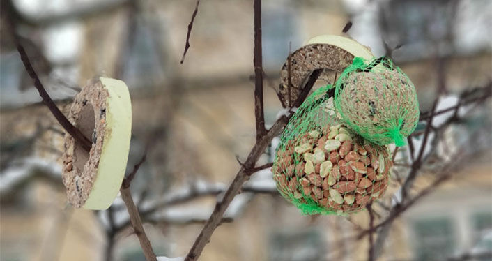 Gençler ayrıca yiyecek bulmakta zorlanan kuşlar için hazırladıkları yem sepetlerini de ağaç dallarına astı.