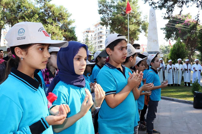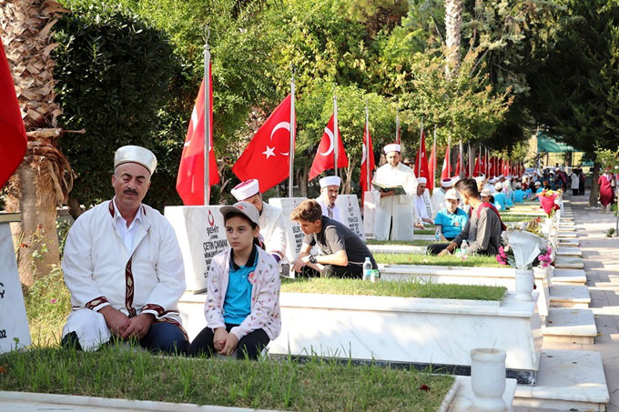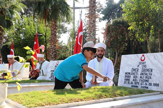 Şehitlik ziyaretine Muratpaşa İlçe Müftüsü Kuddusi Uysal, Konyaaltı İlçe Müftüsü Orhan İmamoğlu, gençlik koordinatörleri, din görevlileri ve öğrenciler katıldı.