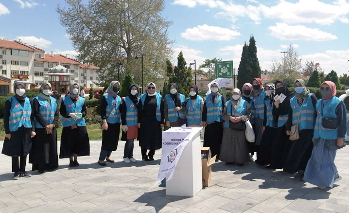 Hazırlanan kartlar, koronavirüs tedbirlerine riayet edilerek gönüllü gençler ve din görevliler tarafından Cumhuriyet Meydanı’nda vatandaşlara dağıtıldı.