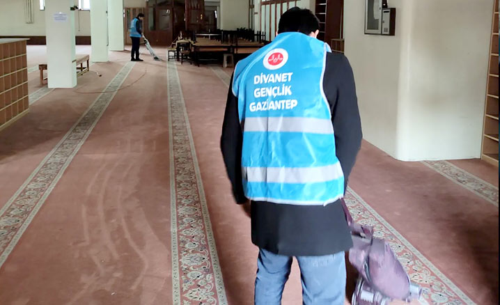Genç gönüllüler Cuma namazı öncesi Gaziantep Ulu Camii’nde bir araya gelerek temizlik yaptı.