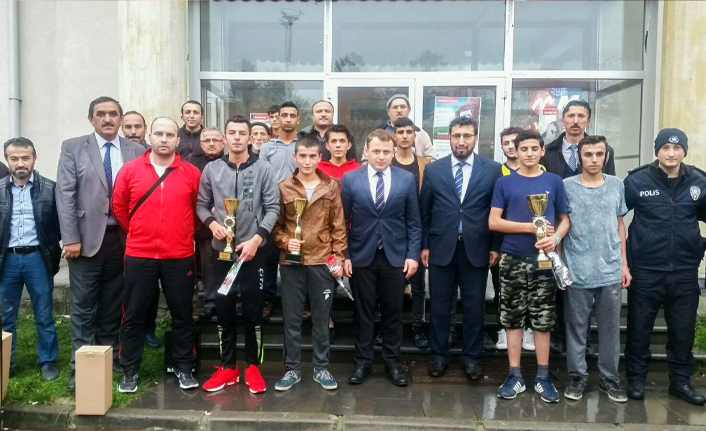 Yarışmanın sonunda dereceye giren gençler kupalarını İlçe Kaymakamı Mustafa Görmüş’ten aldı.