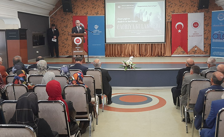 Düzce İl Müftülüğünce "Mevlid-i Nebi ile Camiler ve Din Görevlileri Haftası" etkinlikleri kapsamında konferans düzenlendi.