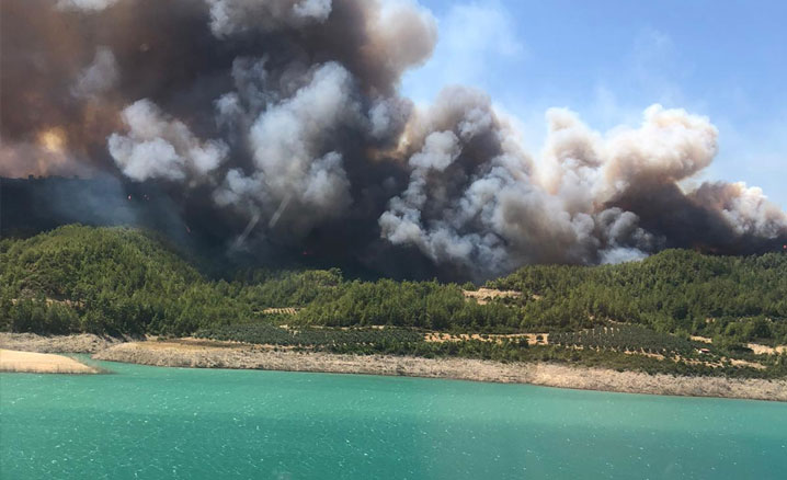 Tarım ve Orman Bakanı Bekir Pakdemirli ile Dışişleri Bakanı Mevlüt Çavuşoğlu, Antalya'nın Manavgat ilçesindeki 4 noktada başlayan ve geniş alana yayılan yangın bölgesinde incelemede bulundu.