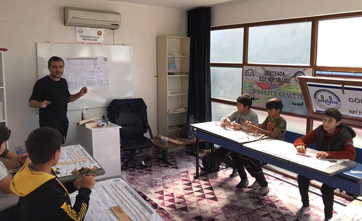 Gökçeada İlçe Müftülüğü ve Türk Hava Kurumu Gökçeada Şubesi iş birliğinde çocuklara yönelik "Model Uçak Yapım Kursu" düzenleniyor.