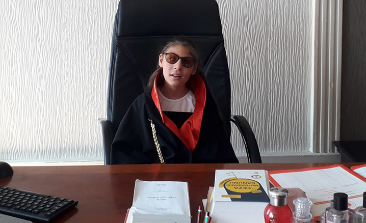 Polis ve savcı olmak isteyen görme engelli Emir Gazi Kalkan (10), Nehir Ergen (9) ve Fadime Melek Tufan (8), İlçe Emniyet Müdürlüğü ve Adliye'yi ziyaret etti.