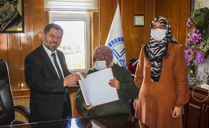 İl Müftüsü Türkmen, Hatice Can'a Diyanet İşleri Başkanlığı tarafından Braille alfabesiyle hazırlanan 6 ciltlik Kur'an-ı Kerim hediye etti.