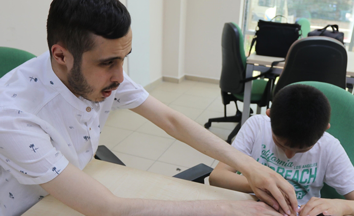 "Türkiye'nin her yerinde görme engelli arkadaşlarımız için kurslar var fakat gençlik merkezlerinde çeşitli branşlarda onlarca kurs olmasına rağmen Kur'an-ı Kerim kursu yoktu. Şimdi iki grup halinde toplam 12 arkadaşıma kurs veriyorum. Haftada iki gün 4 saat ders veriyoruz. Süre sıkıntımız yok. Bu saatler esneyebiliyor. Kursiyerlere süre ezberi, değerler eğitimi gibi dersler verilmekte. Kursiyerlerimizin arasında Kur'an-ı Kerim okumasını öğrenenler var. Harfleri öğrenenler var. Buranın özelliği arkadaşlarımız başka faaliyetlere de katılıyor, sıkılmıyor. Ayrıca merkezde gönüllü çalışan arkadaşlarımız kursiyerlerimizi evlerinden alıyorlar, tekrar evlerine bırakıyor. Kursiyerlerimizin her türlü ihtiyaçları karşılanıyor. Öğrencilerim öğrendikçe ben mutlu oluyorum. Bildiğini öğretmek güzel bir duygu. Hele bu Kur'an-ı Kerim olursa. "