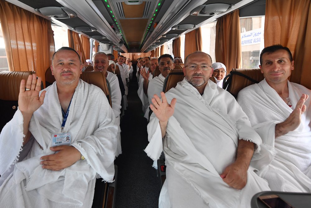 Hacı adayları, Diyanet İşleri Başkanlığının kiraladığı özel otobüslerle gruplar ve kafilelere halinde Mekke'ye doğru yola çıkıyor.