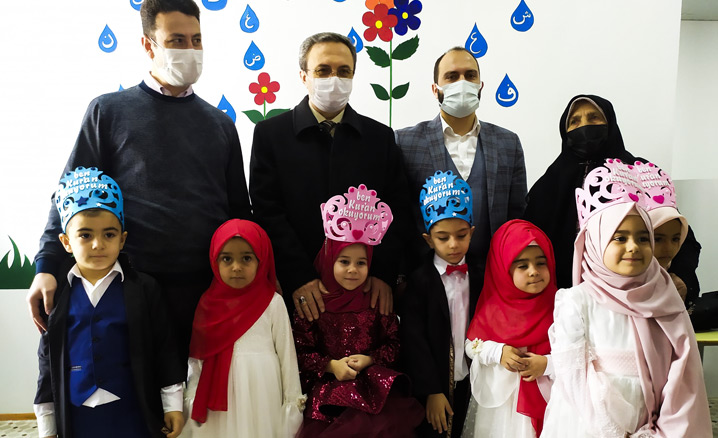 Hafik İlçe Müftülüğüne bağlı 4-6 Yaş Kur'an Kursu'nda eğitim gören ve Kur'an'a geçen minik öğrenciler için "Kur'an-ı Kerim'i Okumaya Geçiş Programı" düzenlendi.