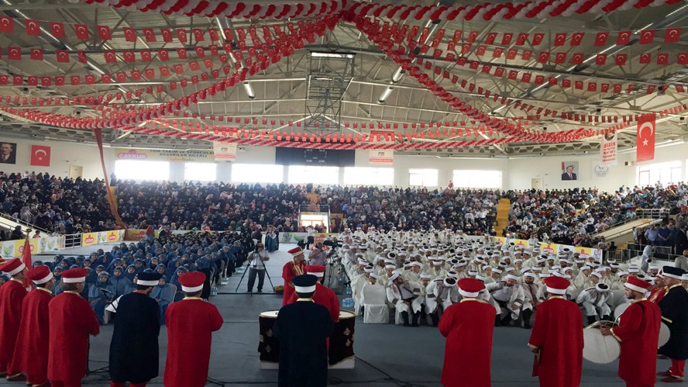 Protokol ve binlerce Kur’an sevdalısının katılımıyla Rize Yenişehir Kapalı Spor Salonunda gerçekleştirilen merasim, hafızların tekbir eşliğinde salona girmesiyle başlayıp mehter gösterisiyle devam etti.