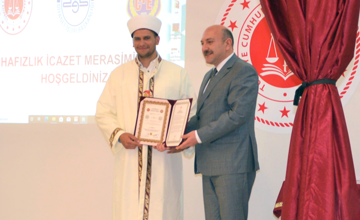 Ereğli Açık ve Kapalı Ceza İnfaz Kurumunda hükümlü bulunan İbrahim Canberk Aybasan, hafızlık eğitimini başarıyla tamamlayarak "Hafızlık Belgesi" almaya hak kazandı.