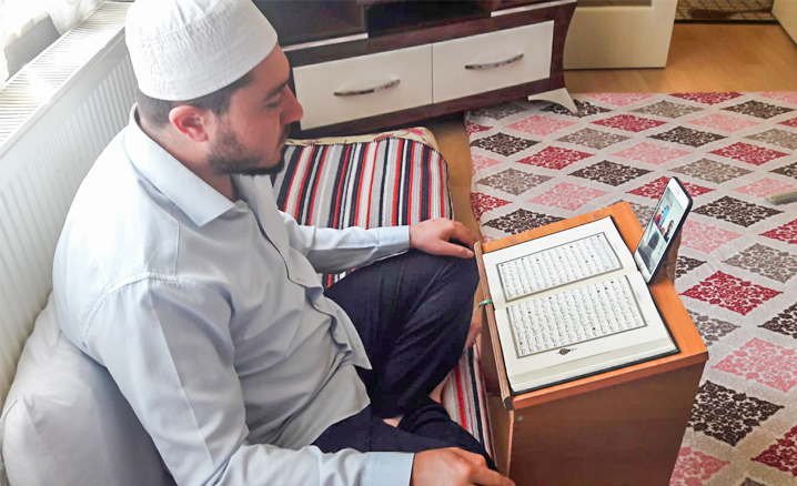 Hafızlık yapan öğrencilerin dersleri, görüntülü aramayla dinleniyor.