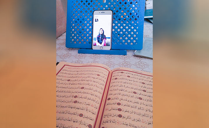 Hafızlık yapan öğrencilerin dersleri görüntülü arama yöntemiyle dinleniyor.