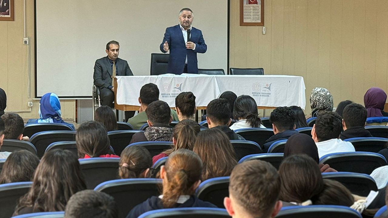 Buluşma kapsamında İl Müftüsü Okuş Okul Müdürü Necdet Er ve idarecilerle ile bir süre sohbet etti. Akabinde okulun konferans salonunda öğrencilerle bir araya geldi.