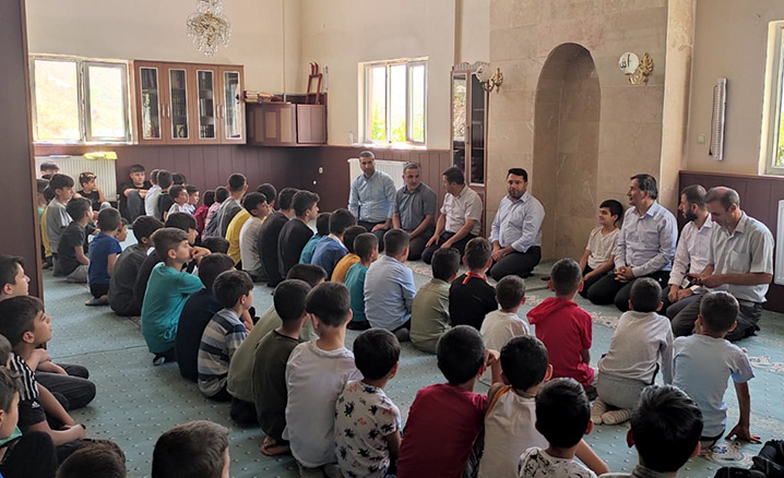 Bu kapsamda Hakkari İl Müftülüğüne bağlı Merkez Hacı İsmail Bal, Musab Bin Umeyr ve Ensar camilerinde açılan yaz Kur’an kurslarına devam eden öğrenciler Ensar Camii'nde buluştu.