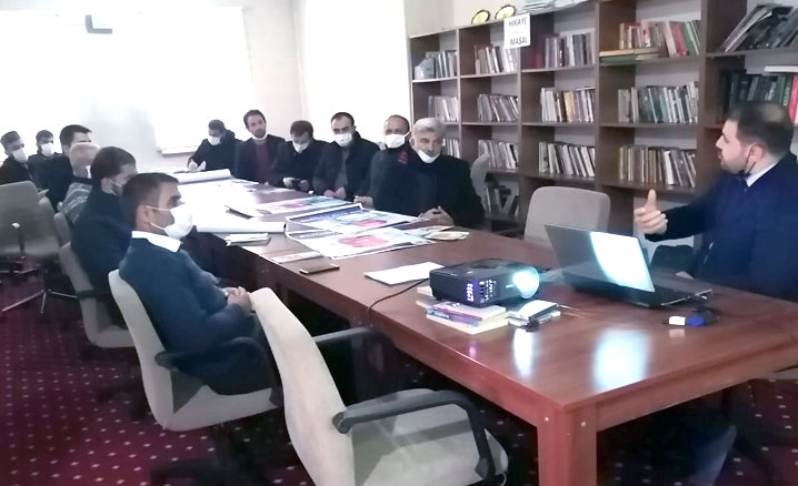 İl Müftülüğü Din Hizmetleri Uzmanı Kerim Alkan tarafından gerçekleştirilen eğitimde, din görevlileri afetler hakkında bilgilendirildi.