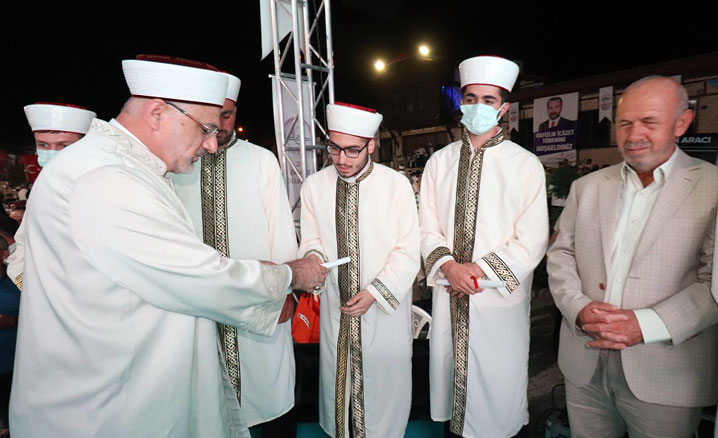 Mushafları İnceleme ve Kıraat Kurulu Başkanı Hafız Osman Şahin’in yaptığı duanın ardından 175 hafıza hafızlık belgeleriyle birlikte çeşitli hediyeler takdim edildi.