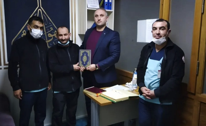 Hastane Mescidi İmam Hatibi Ahmet İpek tarafından verilen kursta Kur’an’ı Kerim okumaya geçen 10 kursiyere İl Müftülüğü tarafından Kur’an’ı Kerim hediye edildi.