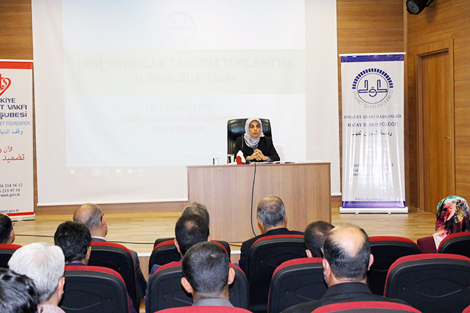 Diyanet İşleri Başkanlığı Süreli Yayınlar ve Kütüphaneler Daire Başkanı Dr. Elif Arslan’ın Diyanet’in yayınları hakkında bilgi verdiği toplantıya Hatay İl Müftüsü Hamdi Kavillioğlu, il müftü yardımcıları, ilçe müftüleri, müftülük personeli, Aile ve Dini Rehberlik Bürosu (ADRB) koordinatörleri, gençlik ve engelli koordinatörleri, manevi rehberlik uzmanları ve din görevlileri katıldı.