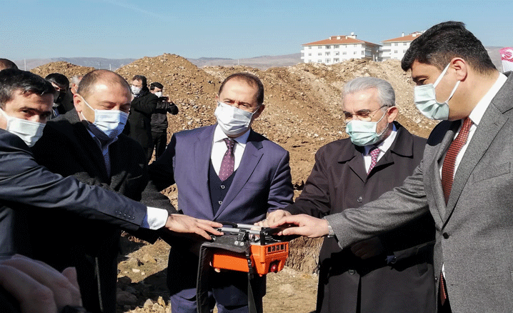 Konuşmaların ardından İlçe Müftüsü Durmuş Ali Çakır’ın yaptığı dua ile Cahide Onat Hafızlık Eğitim Merkezi ve Camii’nin temeline ilk harç döküldü.