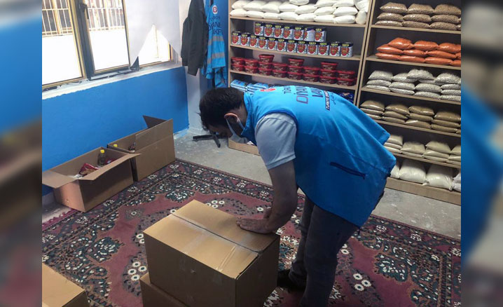 Hayırseverlerin desteğiyle açılan çarşıda, gıda ürünleri ve temizlik malzemeleri yer alıyor.