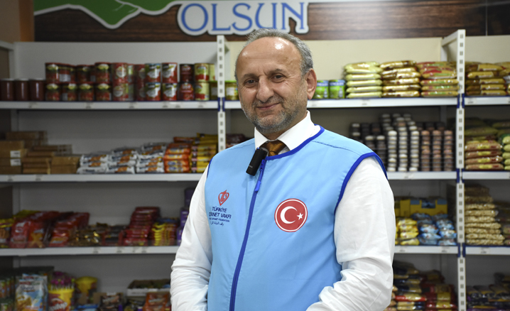 "Marketleri gezdik, hangi malzeme nereye konulur, neler var onları gördük. Çok kısa bir zaman içinde raflarımızı dizerek çalışmaya başladık. Bu marketimizden günde 20-25 kişiye 100'er liradan fazla gıda, İl Müftülüğümüzden gelen hurmalar, bir de ya 1 kilogram et ya da sucuk ikram ediyoruz. Toptancılara teşekkür ediyorum, dışarıdaki fiyatlara nazaran daha ucuz alıyoruz. Burada sadece yetişkinlere değil, çocuklara yönelik de reyonlarımız var."