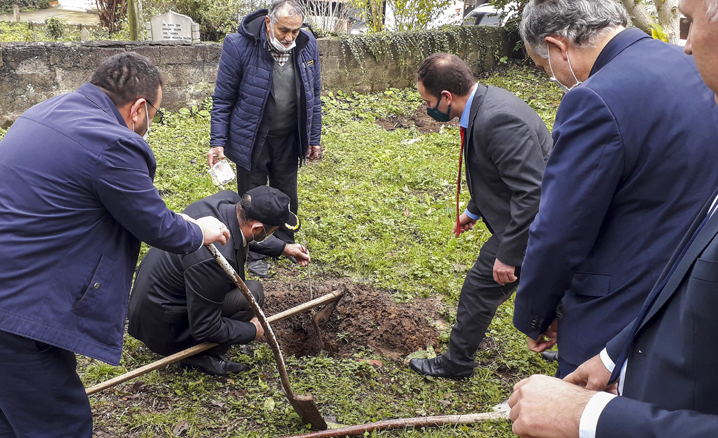Giresun’da düzenlenen fidan dikme etkinliği kapsamında Giresu n İl Müftü Yardımcıları Yusuf Genç ve Murat Mutlu, Camili Köyü Merkez Camii bahçesinde din görevlileriyle birlikte fidan dikti.