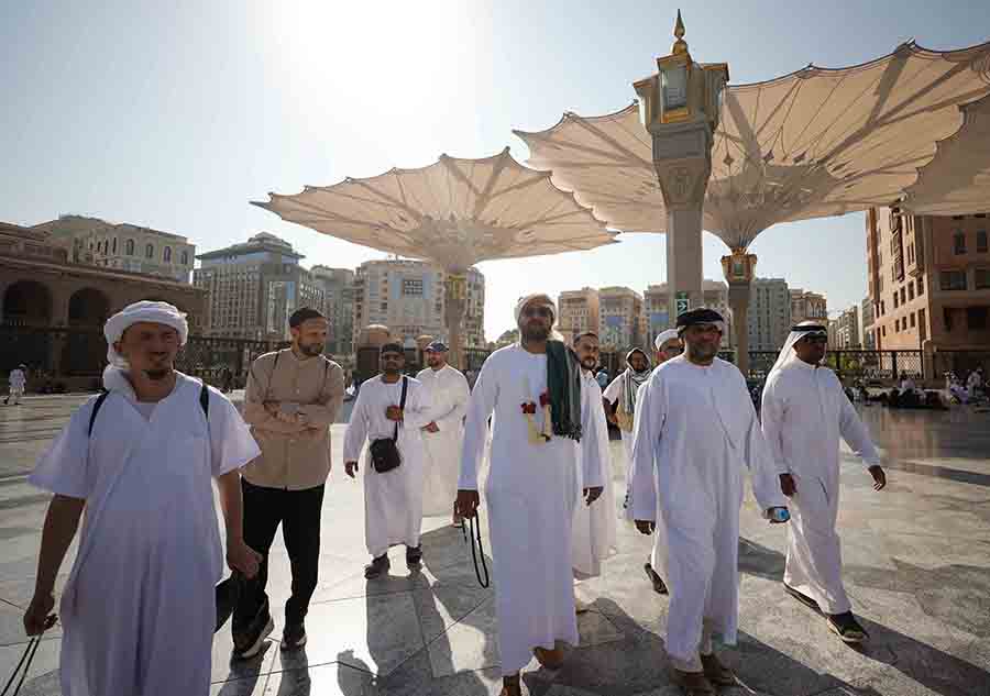 Ekip daha sonra, Hz. Peygamber'in yanı sıra Hz. Ömer ve Hz. Ebubekir'in kabirlerinin de yer aldığı Mescid-i Nebevi'yi ziyaret etti.