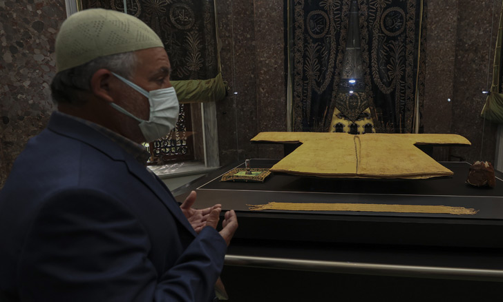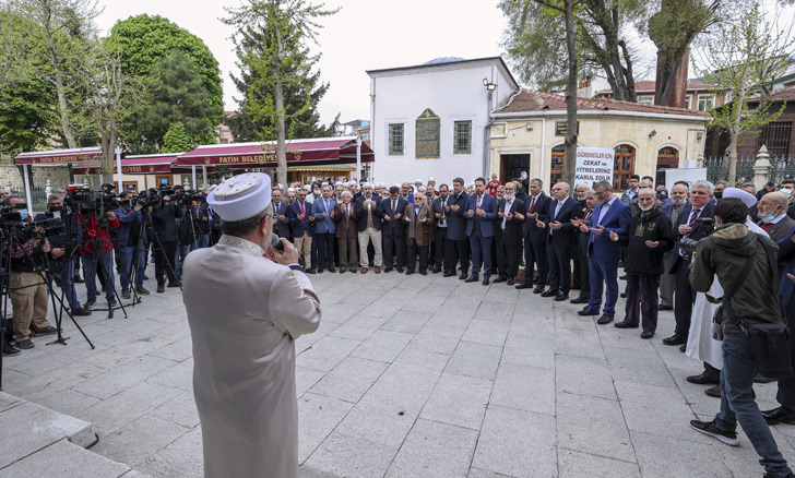 Hırka-i Şerif'in ziyarete açılışı dolayısıyla Hırka-i Şerif Camii'nin bahçesinde düzenlenen törene İstanbul Valisi Ali Yerlikaya, İl Kültür ve Turizm Müdürü Coşkun Yılmaz, Fatih Kaymakamı Kaan Peker ve protokol üyeleri katıldı.
