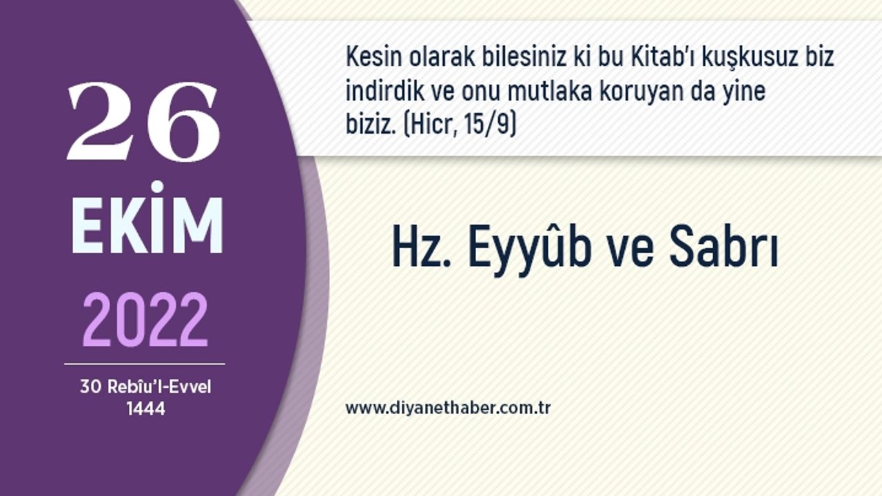 Kur’an-ı Kerim’de Hz. Eyyûb’e vahiy gönderildiği (Nisâ, 4/163), onun hidayete erdirildiği (En‘âm, 6/84) bildirilmekte, ayrıca hastalığıyla ilgili olarak ayrıntıya girilmeksizin bilgiler verilmektedir. Eyyûb (a.s.) Rabbimize, “Bu dert bana dokundu, sen merhametlilerin en merhametlisisin” (Enbiyâ, 21/83-84) diye niyaz etmiş, bunun üzerine Yüce Allah da onun duasını kabul ederek başına gelen felâketi kaldırmış, kendi tarafından bir rahmet ve ibadet edenler için bir ibret olmak üzere ona ailesini ve onlarla beraber bir mislini vermiştir.