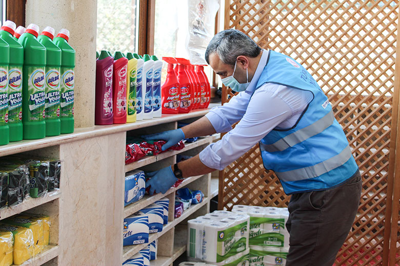 Sarıyer Müftülüğüne bağlı din grubu görevlileri, Sarıyer Kaymakamlığı ve Sarıyer Vefa Sosyal Destek Grubu ile beraber olarak çalışmalara devam ederken, Dedeman Camisi İmamı Abdulsamet Çakır, caminin raflarını gıda ve temizlik malzemeleriyle doldurdu.