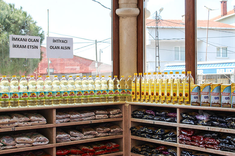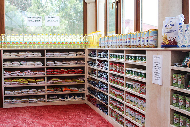 Çakır, "Raflarda bir aileye ne lazımsa hepsi mevcut. Yağdan çaya, şekere, pirince, temizlik malzemelerine ve çocukların seveceği gıdalara kadar hayırseverlerle ihtiyaç sahiplerini bir araya getirmeye çalışıyoruz." dedi.