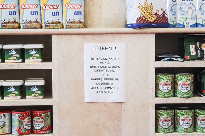 Camide toplanan malzemeler arasında süt, un, pirinç gibi temel gıda maddelerinin yanı sıra temizlik ve mutfak ürünleri de yer aldığını belirten Çakır, "İhtiyacı olan alsın, imkanı olan ikram etsin" sloganıyla başlattıkları yardımlaşma örneğinin 5 gündür sürdüğünü anlattı.